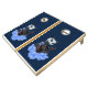Natural Wood Cornhole Set, Royal Blue and Yellow bags