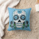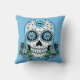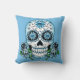 Dia de los Muertos (Day of the Dead) sugar skull with roses and hearts in hues of blue.