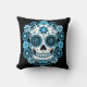 Blue Sugar Skull Throw Pillow