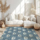 Introduce a calming and stylish element to your space with this blue sunburst pattern rug. The repeating sunburst design offers a modern boho vibe, while the monogram adds a personalized touch, making it perfect for any room that needs a cozy and unique accent. The soothing blue tone pairs beautifully with a variety of decor styles, including bohemian, coastal, and mid-century modern interiors. This rug's harmonious blend of color and design will enhance your home decor, creating a serene and inviting atmosphere.