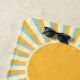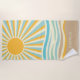 This beach towel features a sunset wave design in blue and tan colors. Add a custom name to make it a special personalized gift for a beach lover!