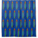 Cute surfboard themed blue shower curtain, perfect for decorating a beach house or coastal home for summer!