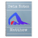 This notebook designed for you to record your swimming training has a simple design of a swimmer and is headed "Swim Notes". You can customise the text if you wish, and you can add your name.