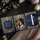 Blue Sword Shield Medieval Fantasy Wedding Photo Tri-Fold Invitation