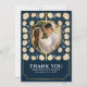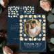 Express your gratitude with medieval charm! These wedding thank you cards feature your photo inside a shield-shaped frame, surrounded by intricate cream florals against a blue background. A unique and elegant way to say 'thank you' to your loved ones!