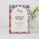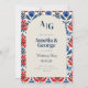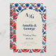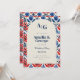 This colorful blue and red talavera tile inspired Mexican wedding invitation is the perfect way to invite loved ones to celebrate your Mexico themed or destination wedding! Elegant wedding invitation with floral images and arch as well as monogram letters for the new married couple!