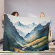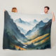 This captivating horizontal fleece blanket presents a breathtaking mountain scene, masterfully rendered in soothing shades of blue and tan that evoke a sense of serenity and awe. At the heart of the composition, a crystal-clear stream meanders gracefully down the mountain, its waters reflecting the sky's azure hue, creating a harmonious blend of colors that exudes tranquility. The mountains, depicted in varying shades of tan, rise majestically against the backdrop, their peaks touching the sky, suggesting both their grandeur and the timeless beauty of nature.