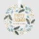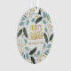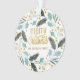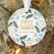 Blue Tan Winter Greenery Merry Christmas Name Ornament