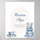 Custom sign featuring watercolor stack of blue teacups. Personalize with your own text. Matching collection in the Adore Paper Co. Zazzle shop.