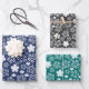Blue, Teal, Black & White Star & Snowflake Pattern Wrapping Paper Sheets