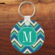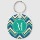 Blue & Teal Chevron Pattern with Monogram Keychain