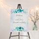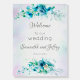 Blue teal green flowers floral welcome wedding sign.