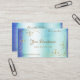 Make a lasting impression with this elegant and luxurious business card design featuring pretty gold ornate corner borders with cute hearts on a luminous shimmery blue and teal colored marble pattern background.