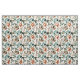 Pretty fabric with blue/teal, rust/burnt orange, and sage green watercolor leaves on white.