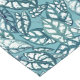 This is a pattern of blue, turquoise and white tropical leaves on a pale blue background.