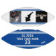 Custom Blue Team Name Player Number 2 Photo Football. Modern sporty custom football with player's name, team name, player's number and year on one panel and 2 custom photos on the second panel - add your text and photos. Sporty design with stripes. You can change any text on the football or erase it. A perfect gift for a football player, teammate, coach. Great keepsake to remember the favorite sport.