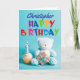 A special 1st birthday card! This first birthday card features a cute teddy bear, a cupcake and some colorful text. A memorable design for someone who will be one year old.