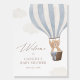 Welcome friends and family to you or a loved one's baby shower with this teddy bear and hot air balloon themed welcome sign.