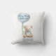 Celebrate a precious arrival with this personalized throw pillow featuring a watercolor teddy bear, blue balloon, and custom baby birth stats. A sweet nursery keepsake for baby boys that makes a thoughtful gift or cozy decor piece for the nursery rocker.