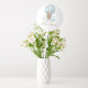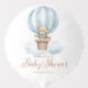 Blue Teddy Bear Boy Baby Shower Balloon features an adorable watercolor illustration of a teddy bear in a hot air balloon against soft clouds.