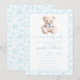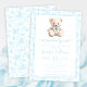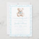 Blue teddy bear floral pattern baby boy shower invitation