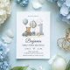 Celebrate your little one turning ONE with this blue teddy bear & hot air balloon “beary first birthday” design. A sweet watercolor teddy riding a toy car sits beneath a striped hot-air balloon, soft clouds, wooden blocks, and a big number 1—perfect for a boy first birthday invitation in a modern, neutral nursery style. The soft pastel blue and grey palette keeps the look timeless for photos and keepsakes.