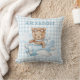 Blue Teddy Bear on plane Throw Pillow is perfect for your little one's nursery. Easily customize it with baby's name.