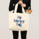 A tote bag with blue text that reads "My Library Bag", perfect for taking books to and from the library!