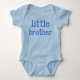 Blue text little brother dark T-shirts, sweatshirts, football bodysuits, and other apparel for babies, kids, and toddlers, can easily be personalized by adding a name below the text.