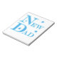 New Dad keepsake boxes, tiles, notebooks, ornaments, magnets, cards, tote bags, mugs, and other new dad clothing and gift items with a blue text and star design.