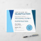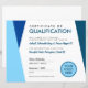 Recognize academic achievements with this modern certificate design, which features ocean and sky blue tones and easy-to-read fonts. Customize with organization's name/logo, team name, handler's name, therapy animal's name, qualification level, signatory, and expiry date.