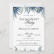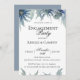 Trendy Blue Thistle flowers and leaves, engagement party invitation. Text font style, color, and size can be customized. Background color shown in dusty blue can also be edited to match your event.