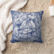 Blue Three Hares Rabbits Sharing Ears Folk Design Throw Pillow