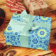 Elevate your gift presentations with our modern psychedelic tie dye mandala patterned wrapping paper in trendy blue, aqua and yellow.