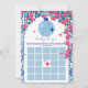 Mediterranean Greek musical bougainvillea inspired mia baby shower bingo game. Indulge in the charm of the Mediterranean with the Mamma Mia-themed baby shower collection! Celebrate your little one's arrival amidst the serene hues of blue and white tiling reminiscent of the Santorini seaside. The invitations are made with playful elegance and pink bougainvillea, while the signs and decor are colorful and beautifully highlight the baby shower celebration. #zazzlemade