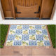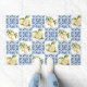 Elegant watercolor french country blue tile and lemon pattern doormat to decorate your home with grace.