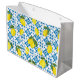 Blue Tile French Country Lemon Pattern Large Gift Bag