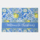 Blue Tile French Country Lemon Pattern Monogram Doormat