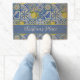 Blue Tile French Country Lemon Pattern Monogram Fiber Doormat