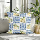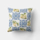 Blue Tile French Country Lemon Pattern Throw Pillow