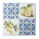 Elegant watercolor french country blue tile and lemon pattern ceramic tile to decorate your home with grace.