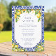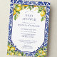 Blue Tile Lemon Mediterranean Baby Shower Invitation