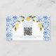 Blue tile lemon Mediterranean wedding rsvp QR Enclosure Card