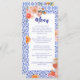 Elevate your bridal shower with this Mediterranean-inspired menu card, featuring intricate blue tile patterns and vibrant orange citrus accents. Perfect for an Italian-themed celebration, this elegant design captures the charm of the Amalfi Coast with its blend of classic Mediterranean motifs and warm, inviting colors.
