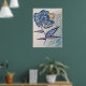 Blue Tile Texture Flower Painting Poster