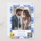 Blue Tiles and Bougainvillea lemons elegant Mediterranean Greek Santorini Mykonos themed wedding photo template save the date template instant download all in one - with wedding website at the back, just add your url address and Zazzle will generate code for you.