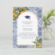 Elegant and modern Graduation announcement card. Elegant Classic blue card featuring beautiful watercolor tiles and citrus oranges.