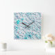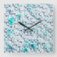 Blue tiles in textured rough style, mosaic square wall clock