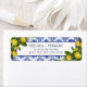 Stylish Mediterranean destination wedding themed blue tile and lemons return address label stickers to compliment your wedding invitations, couples shower invitations, and thank you cards.