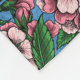 Blue tit birds in the blooming cherry tree on blue fleece blanket